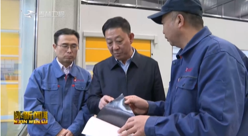 調研中胡玉亭來到吉林化纖分別實地踏查碳纖維制品孵化基地、高性能碳纖維生產車間,詳細了解碳纖維下游制品應用及生產情況,集團公司黨委書記、董事長宋德武參加調研。
